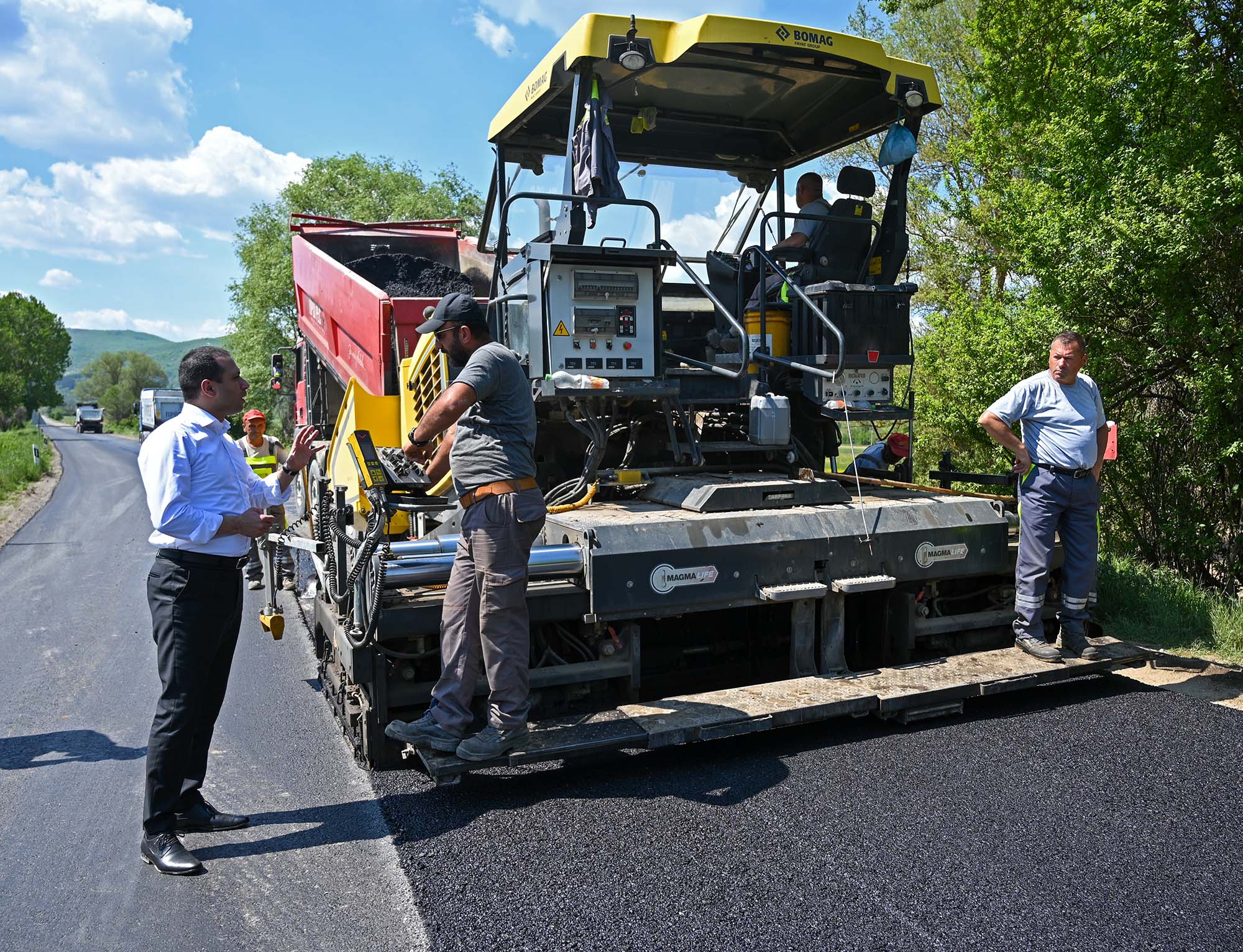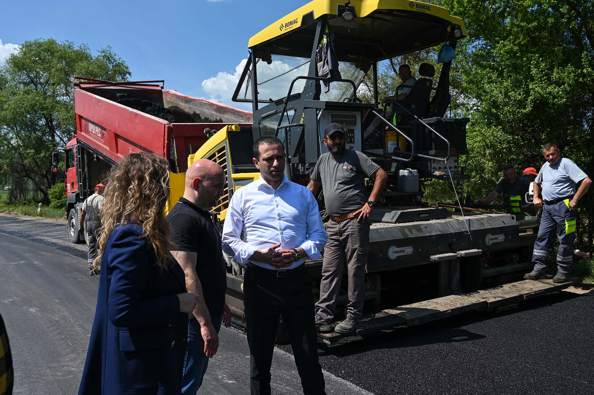 „Дадовме збор пред граѓаните и драго ми е што денеска сме повторно тука во Сопотница, заедно со директорот Ацевски и пратеничката МАРИЈА да извршиме увид на овој толку важен патен правец за жителите на општина Демир Хисар. Во овој момент се поставува нов асфалт, така како што им ветивме на жителите, очекуваме оваа градежна сезона да продолжиме со рехабилитација и на другите патни правци предвидени во годинешната програма,“ изјави министерот за транспорт и врски, Благој Бочварски.