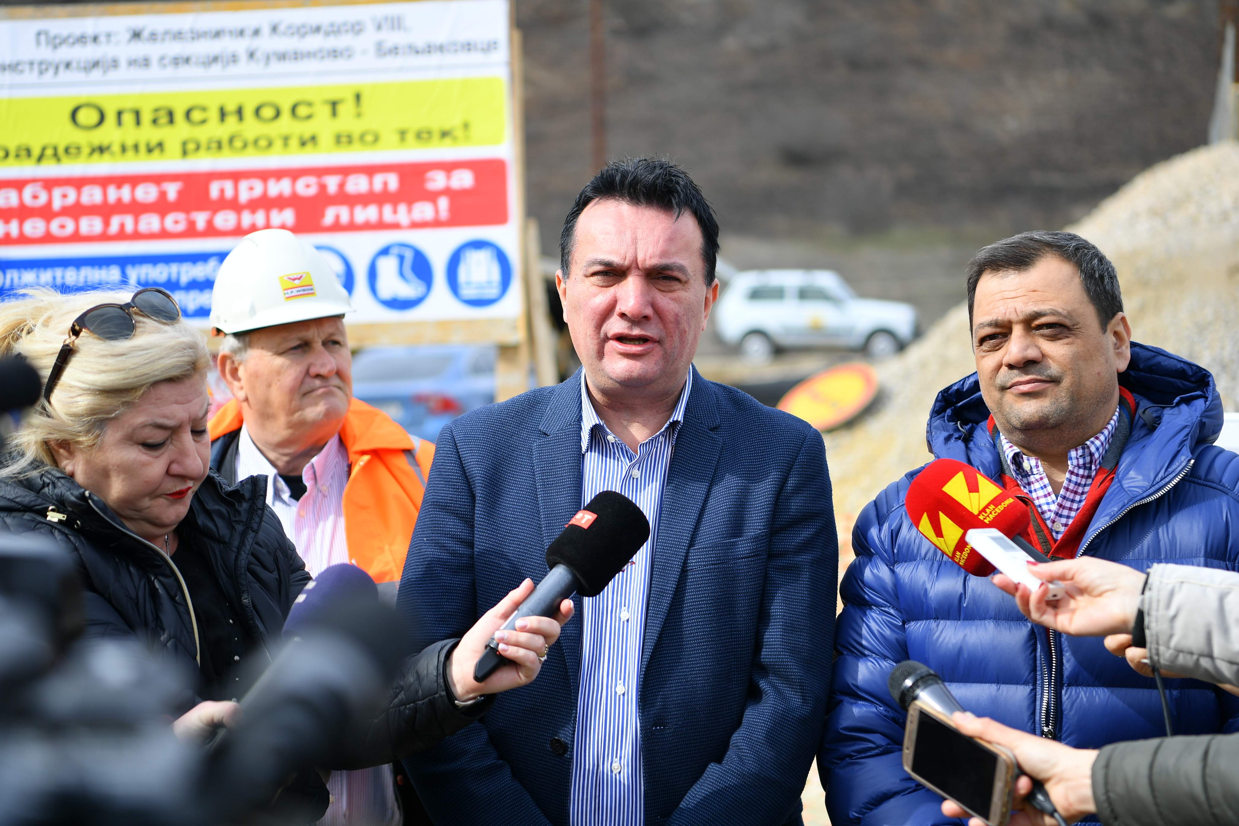 Заменик претседателот на Владата на Република Северна Македонија задолжен за економски прашања, д-р Кочо Анѓушев, министерот за транспорт и врски Горан Сугарески и директорот на ЈП МЖ-Инфраструктура, Ирфан Асани, денеска, извршија увид во изградба на првата фаза на пругата кон Република Бугарија, делницата Куманово – Бељаковце.